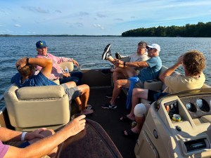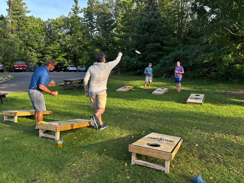A cruise on the pontoon led to a visit to Powell’s restaurant across the lake, where cocktails and tossing bags filled the time while we waited for a table.