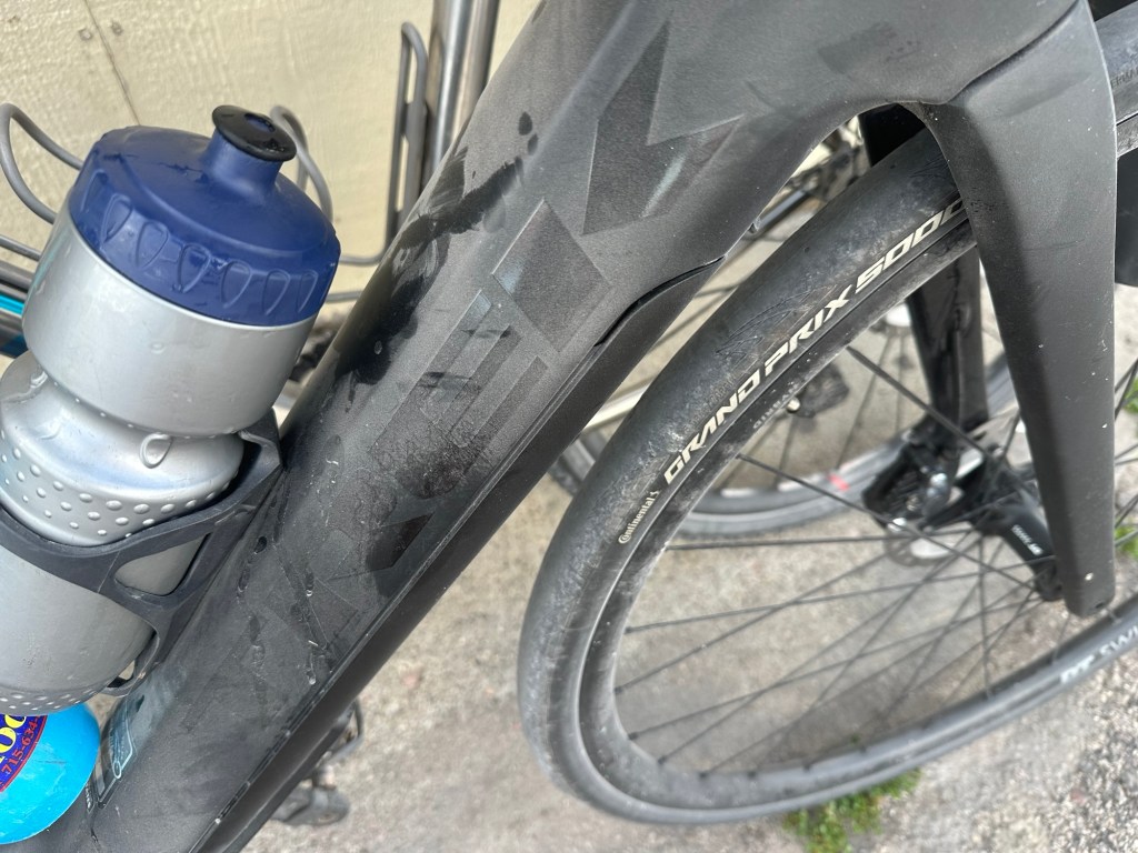 If you’ve ever watched much of the Tour de France, you’ll recognize that this situation rarely turns out good. I stiffened up to hold my bike upright as Paul unsuccessfully attempted to decouple us. I could tell by the sound of what followed it wasn’t a soft landing.