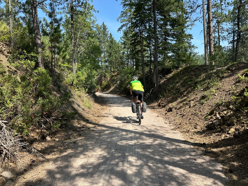 Today, we ride south. The scenery around Hill City is beautiful. We are looking forward to the change from sitting on a car seat all day to pedaling down the trail.