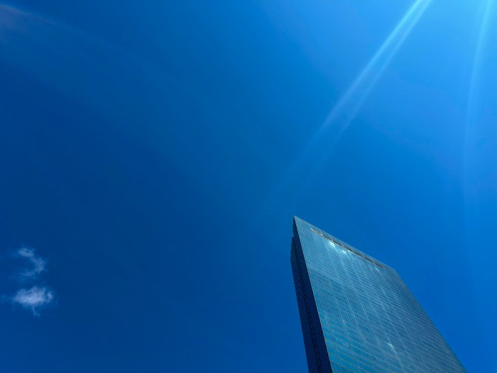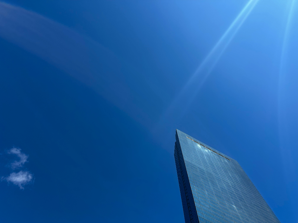 I looked up at the sky with the angular shape of the Hancock Tower and the sunlight features showing in the lens, and I have settled on that as my pick for the day.