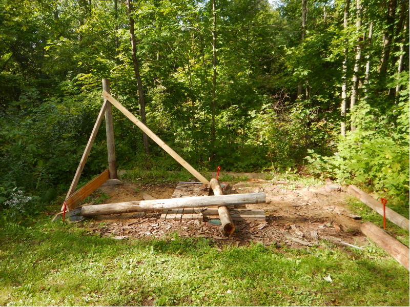We almost put up the posts for the wood shed, version 2. Made some progress, then had to undo that and start again. After several attempts, I came to the conclusion that we shouldn’t try to robustly attach all the legs and expect the roof to align properly. We need to find a way to get the roof up resting on the back posts, and then place other posts beneath, line everything up, and fasten it all together.