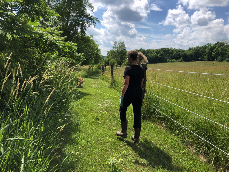 I took a picture with Delilah in it, but I was focused on showing the fine pathway I cleared around the back pasture fence line.