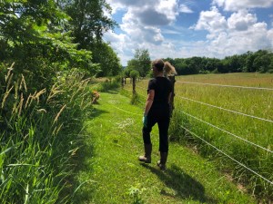 She and Delilah had just come out of the woods on their morning walk along our trails, a situation that signals to the horses, breakfast at the barn will soon be served.