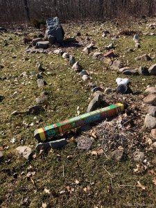 The multiple-language peace pole was toppled over. Cyndie’s winged angel statue was face down with a broken nose. In the distance, my “third rock” lay on the ground beside the boulders that previously cradled it.