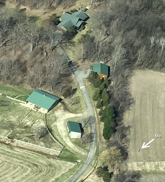 When the plane continued the loop and came around again, my confidence jumped that it could be one of my friends in high places. I was in a tangle of trees at that moment and chose to make a break for the most open space nearby, which turned out to be my neighbor’s field.