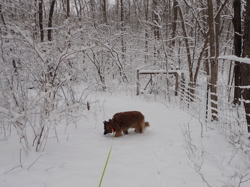 It is mind-boggling how much things can change in one day. It is such a dramatic difference to go from walking our trails on a warm, sunny day to tromping through deep snow the next.