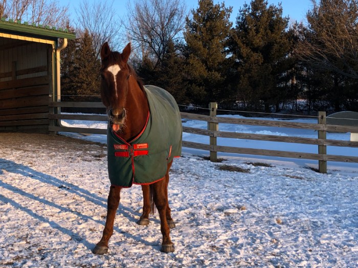 The horses didn’t seem to pay the Arctic cold much attention, except maybe to more fervently devour hay for fuel to generate desired body warmth. We didn’t waste much time after the morning “cheers” (Ian’s and my more descriptive variant of “chores”) of seeing they got properly fed, knocking away ice that formed on their waterer, and doing the requisite housekeeping under and around the barn overhang.