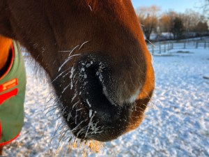 The horses haven’t complained. They are impressively stoic about the deep freeze but they can’t hide the icing that collects on their whiskers and eyelashes.