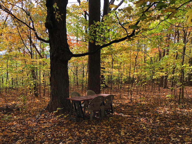 For all of the leaves that have fallen to the ground already, the autumn show of colors is not over yet. We are enjoying a thrilling pizzazz of fall scenery around our property. The floor of our forest has attained one of my favorite looks.