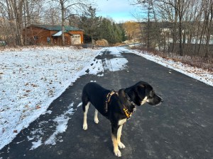 Finally, I was able to reach him and attach the leash to his harness. I am not proud of my performance as I practically dragged him back the long walk to our house on that leash.