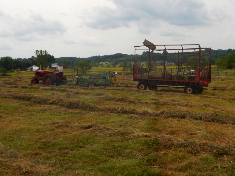High point of the day for me yesterday was finding a neighboring farmer working our fields to finally bale some of the cut hay that has been left on the ground for weeks, repeatedly being rained on instead of properly drying out. The past week offered the longest stretch of dry days that I can recall so far this summer.