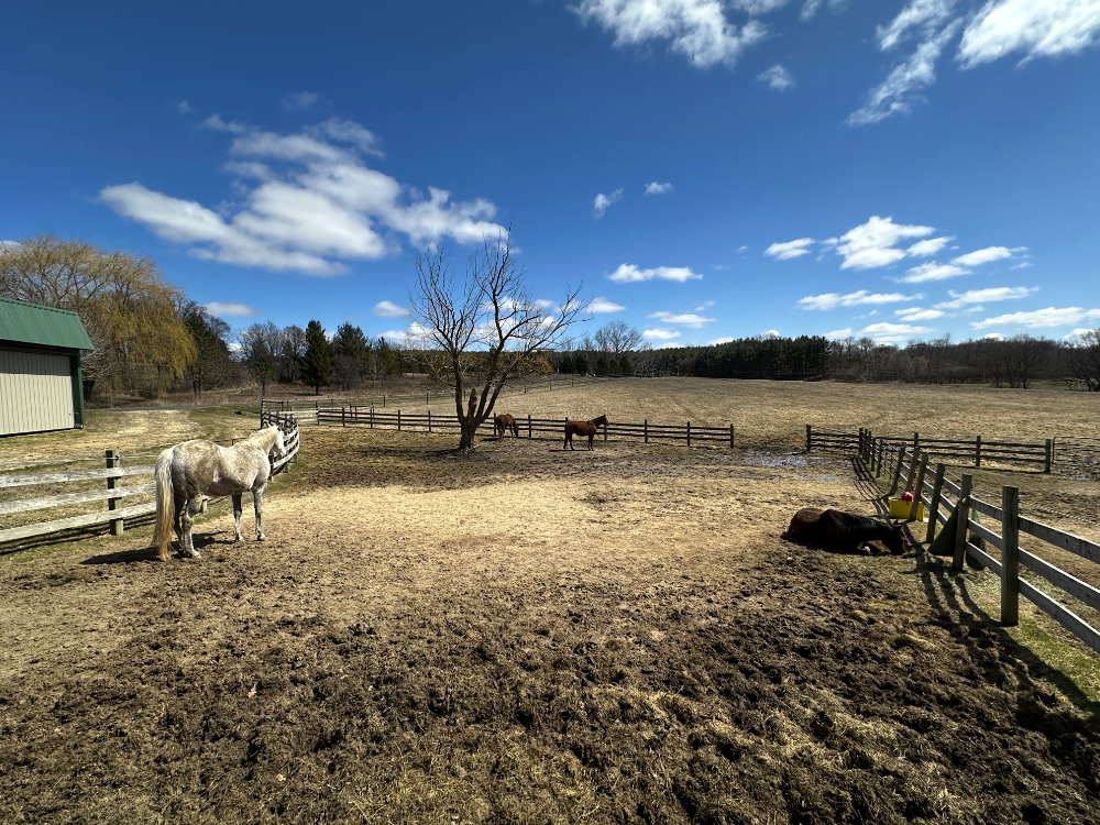 Now the horses can rub against a wider span of the bumpy braid when the rain blankets we just put on them again become bothersome.