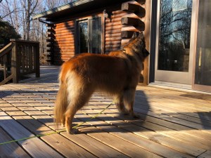 Yesterday, we were all out on the deck enjoying the warm sunshine. There were squirrels, songbirds, and fresh spring aromas in the breeze. Plenty to entertain our senses. When Cyndie stepped inside to do some meal prep in the kitchen, she left Delilah out with me to allow more time in the great outdoors.