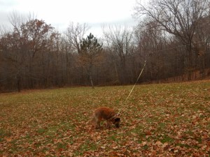 It was the trunk of a large old maple tree and I’m guessing she spotted a critter –likely a rabbit– disappear into an opening at the base of the tree. Delilah reacted with a frenzied, but futile attempt to attack the fortress. I don’t think I’ve ever witnessed such a carnivorous fervor from her, except maybe the one time last summer when she had the lake-neighbor’s dog firmly clamped in her jaws.