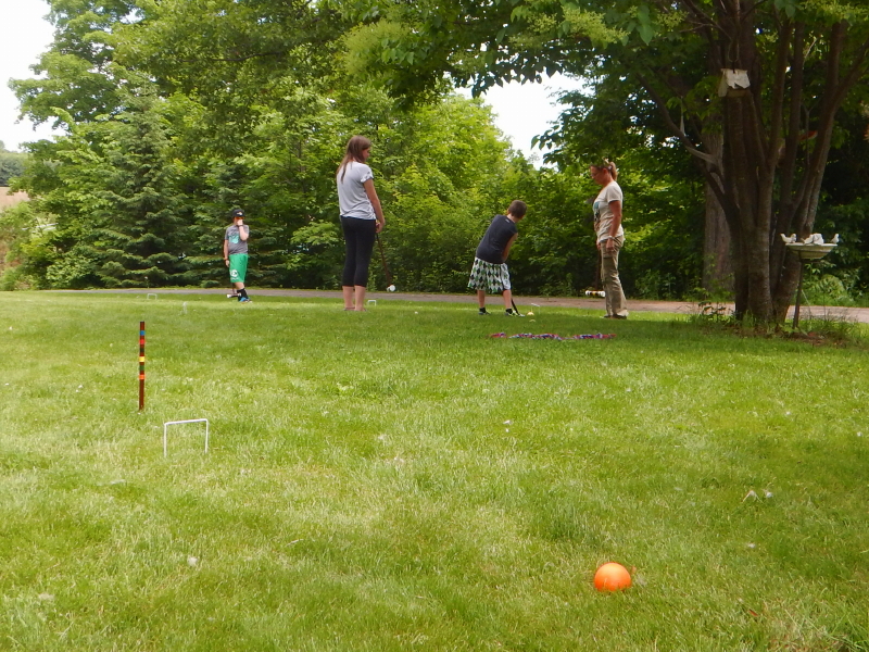 Cyndie served up some treats and pulled out the lawn games for the niece and nephews. They gave her a fabulous collection of mini figurines and decor that are now wonderfully arranged down by the labyrinth garden. We had a beautiful afternoon of outdoor activities, although keeping to mostly high ground.