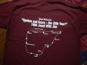 The “Jim” was Jim Klobuchar, who at the time was a columnist with the StarTribune newspaper. I had been a fan of his writing for years, as well as a long-time cyclist with a curiosity about days-long riding and camping. 1994 happened to be the 20th year he was conducting these rides, which he convinced the StarTribune to sponsor.