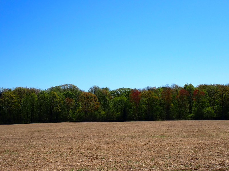 The only pictures I took were at a rest stop with this empty field and the newly budding trees on the far border. I quickly put the camera away because the tiny black flies made rolling along with a breeze the better option.