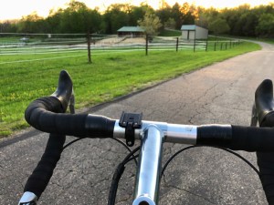 Eight miles in 36 minutes, including several fair-sized hills. Minimal traffic and only a couple of farm tractors to pass. Startled someone’s horse napping in a pasture and got stared at by a lot of cows.