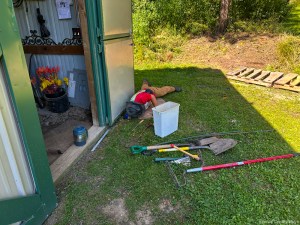 Doesn’t matter now because yesterday my digging beside the barn also proved futile. I got as deep as my arm could reach, which is the depth I know it should be from digging on the inside, but didn’t find the cables.