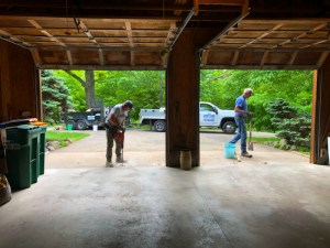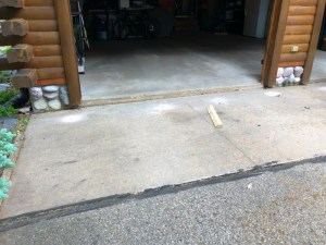 I successfully avoided titling this post, “Apron Lifted” but that is what happened yesterday in front of our garage. We have a plan of fixing our driveway this summer and in preparation for that, the first thing that needed to be completed was to solve the sunken concrete apron in front of our garage.