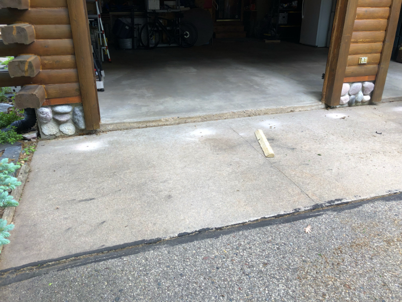 On my side of the garage, the apron has fallen almost three inches. We were warned by the company doing the work to be careful moving our cars back into the garage because the old habit of revving the accelerator to get over the bump will no longer be necessary.
