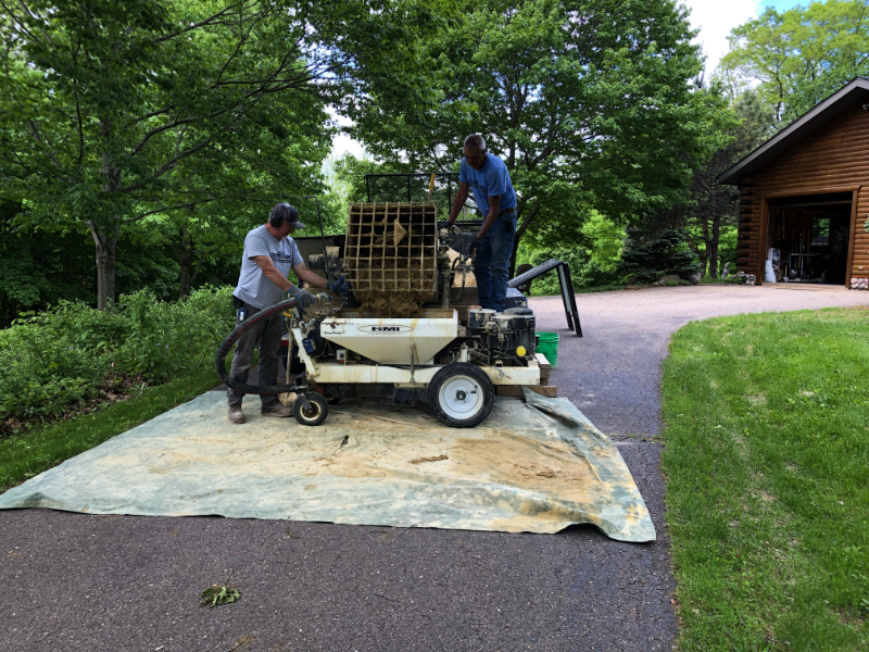 The company we chose uses polymeric sand to seal the gap between the apron and the main garage slab. This was my first exposure to the material and leaves me intrigued to consider using it in other applications in the future.