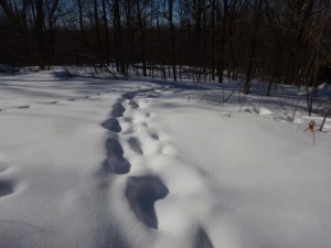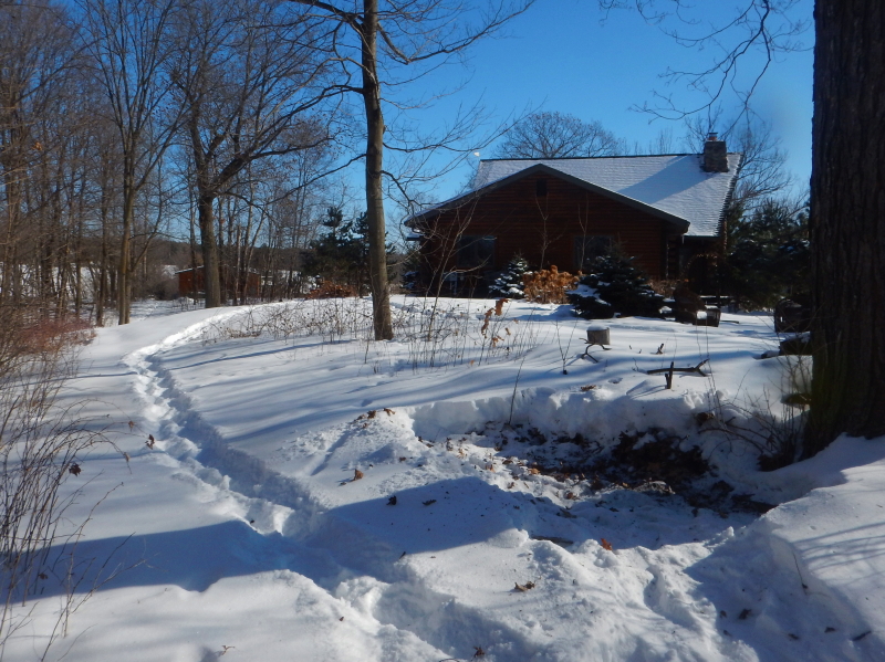 I decided to take her out for a heavy-duty workout. Strapping on snowshoes, I headed off to pack down a path on our trails that hadn’t received much attention since the last few snowfall events.