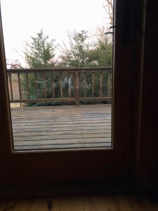 Over the weekend, while in the midst of my planking and stretching routine, I glanced out the bedroom door and noticed a message written on the glass.