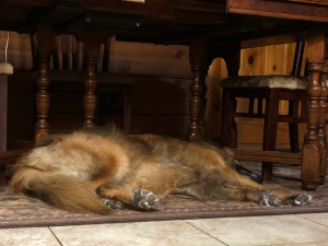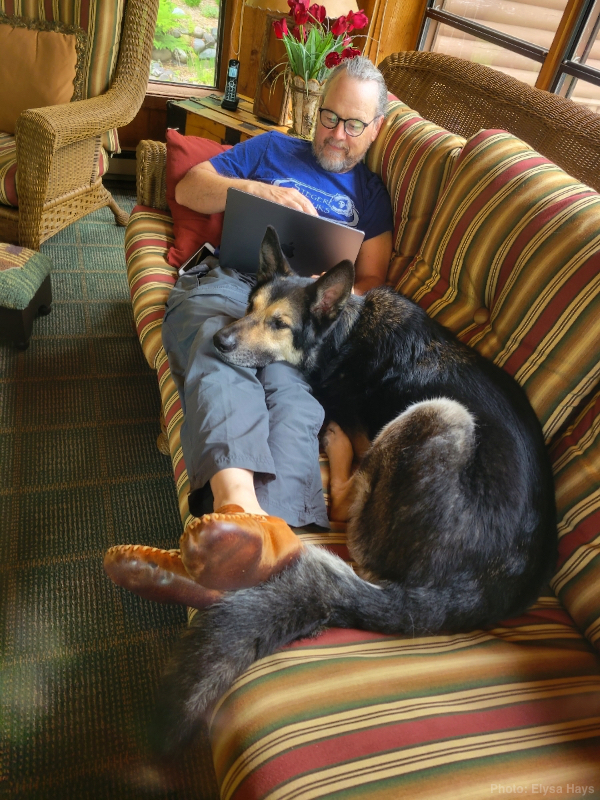 She mostly lays at Cyndie’s feet but still occasionally pops up to bark at something outside that neither of us can identify. Delilah shows no signs of pain or discomfort so we are left with witnessing her slow down between glimpses of her old spark.