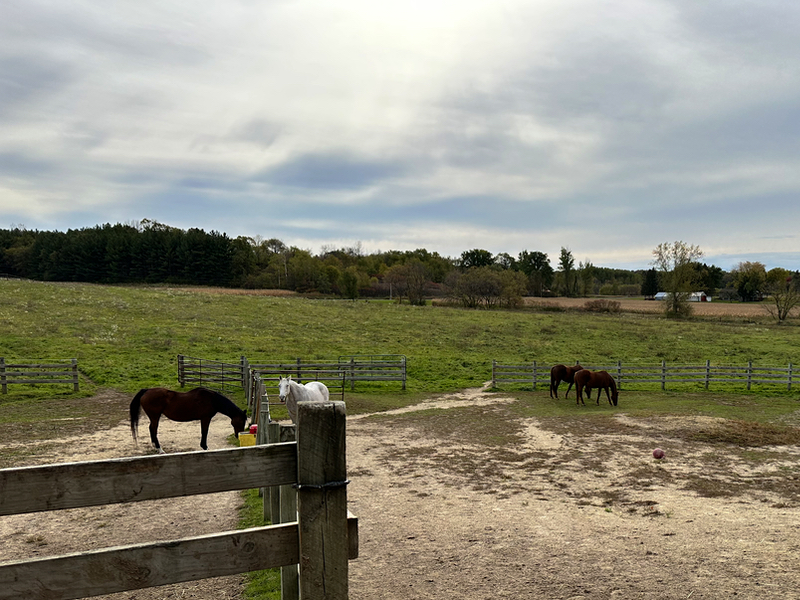 She didn’t need to tell me a third time. I retreated to the other side of the gates at the overhang and watched from a distance. Mia stayed beside light as they slowly made their way toward the far side of the large paddock.