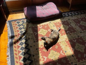 Once back in the house, I recovered nicely with a spectacular breakfast of perfectly poached eggs on toast that Cyndie served and I was reclining under a lap blanket absorbing the stories in the daily newspaper. It was deliciously serene when Delilah leaned into my chair to request some scratches.