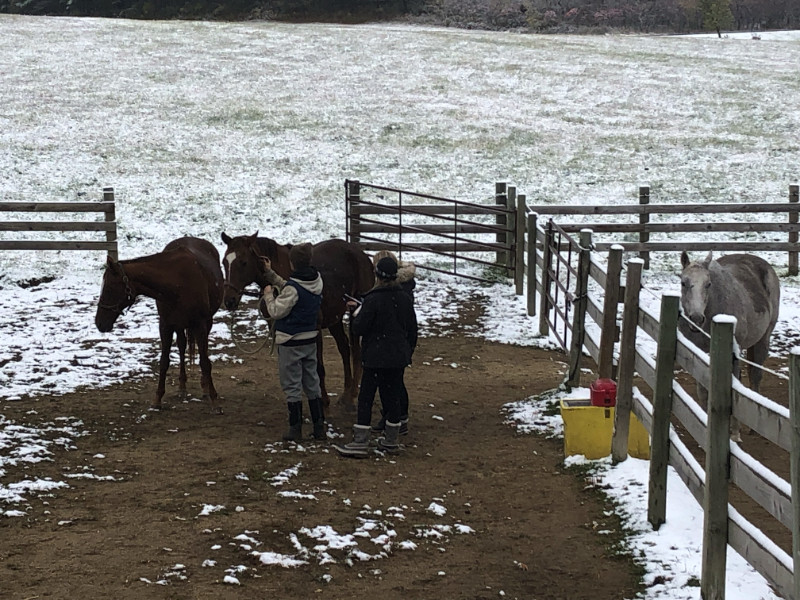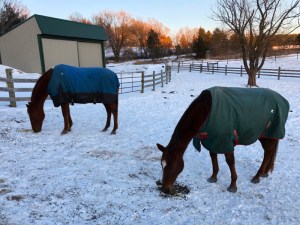 Blessed with excellent supporters to care for our horses while we are away, we arrived home yesterday afternoon to find everything perfectly in order at Wintervale. It was the first time we have seen the horses wearing blankets. That was accomplished by two people as the temperatures were about to drop to the depths.