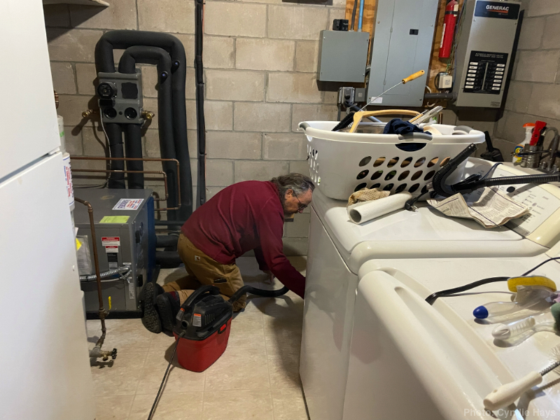 Well, it was time for some serious spring cleaning yesterday. The washer/dryer set Cyndie ordered last January is to be delivered today. Tomorrow, our geothermal furnace will receive its annual inspection. We don’t want the service people thinking we are complete degenerates who tolerate the presence of cobwebs in our living space.