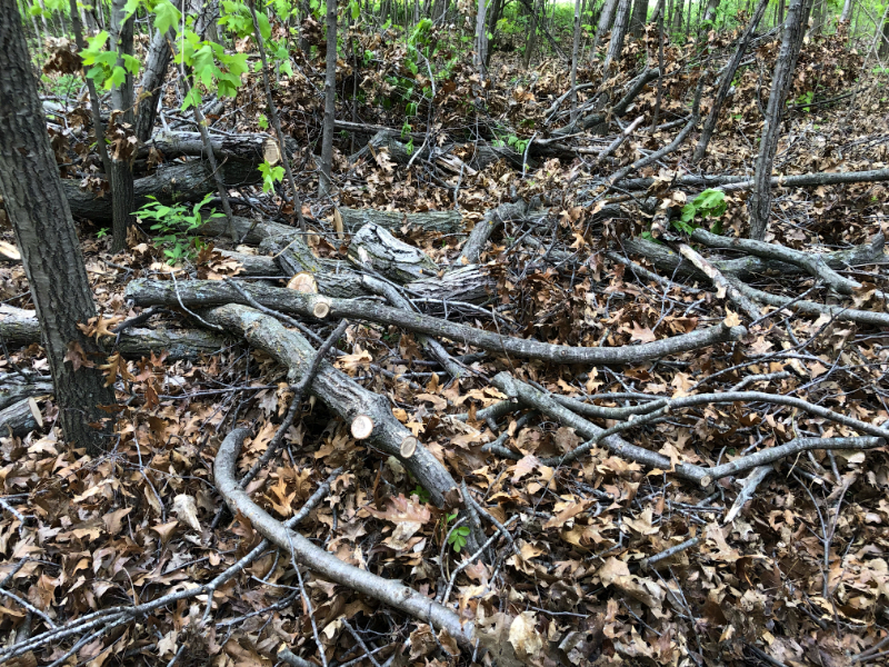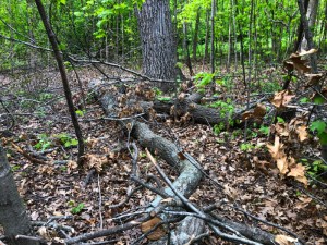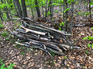 The smallest branches will be hauled to our northern property line where we are making a “fence” by piling up brush.