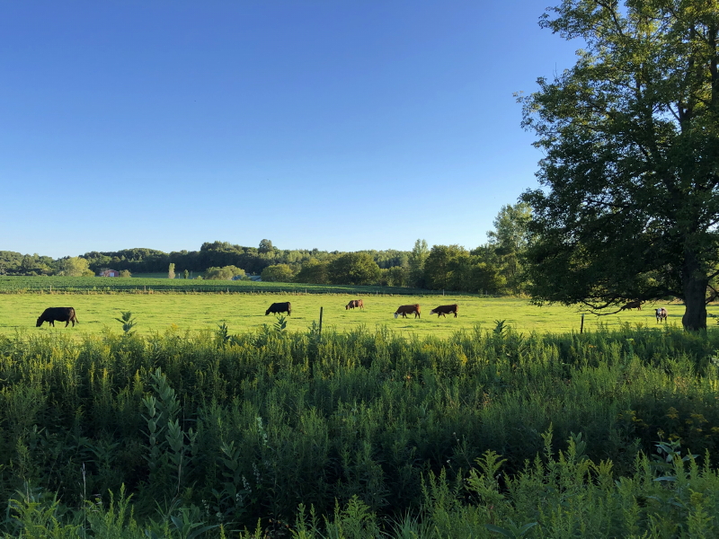 The guy who leases farmland south of us grazes cattle there in the summer and cuts some grass fields to be round-baled. It helps us to have our field cut so they generously include our irregular-shaped acres in their cutting and baling. We generously charge them very little for the hay they get off it.