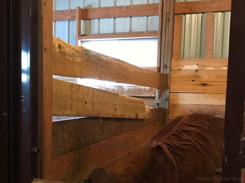 Cayenne also maintained the neatest stall out of all four horses. Despite her penchant for painting the back wall with her poop, the rest of the shavings on her floor basically remained clean. I guess she reserved her mess for the water bucket in that stall. She had a habit of soaking her mouthfull of hay or feed pellets in the water as she ate. Made her bucket a murky disaster by the time we came around to refill them.