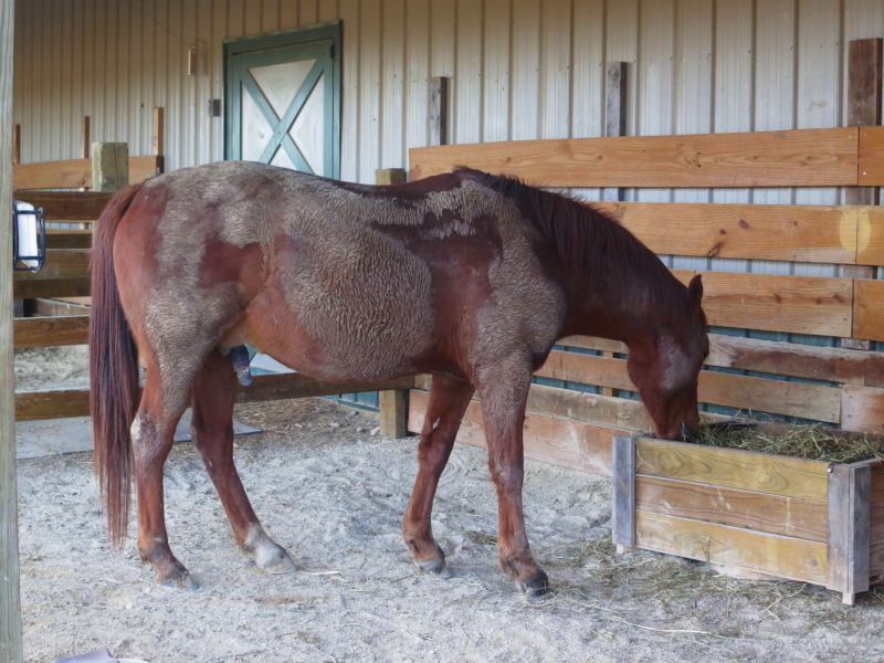 After my week of healing from poison ivy, I know all too well of that orgasmic feeling of having itches scratched. The horses stiffen their necks and bob their heads while making funny expressions with their lips. She was loving it.