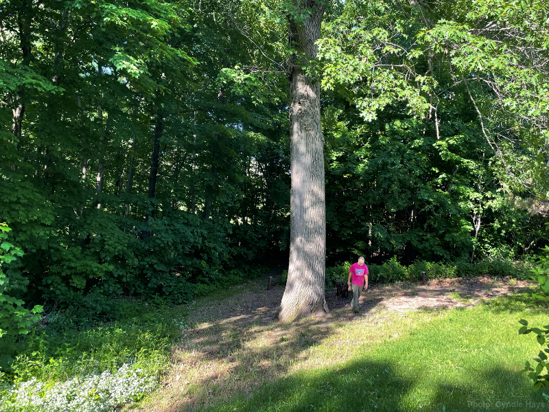 We have a plan in mind to do some much easier chainsawing behind Cyndie’s perennial garden where we found an eight-foot oak tree that is being smothered by junk trees. Actually, they are more like overgrown bushes than they are trees. In cutting down those nuisances we’ll open a lane behind the garden to continue the last distance for our perimeter trail along our property border.