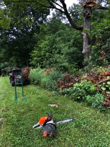 I think I’m going to let the tree cutting wait until I’ve finished using the hedge trimmer along the sides of pathways and the string trimmer along the fence lines.