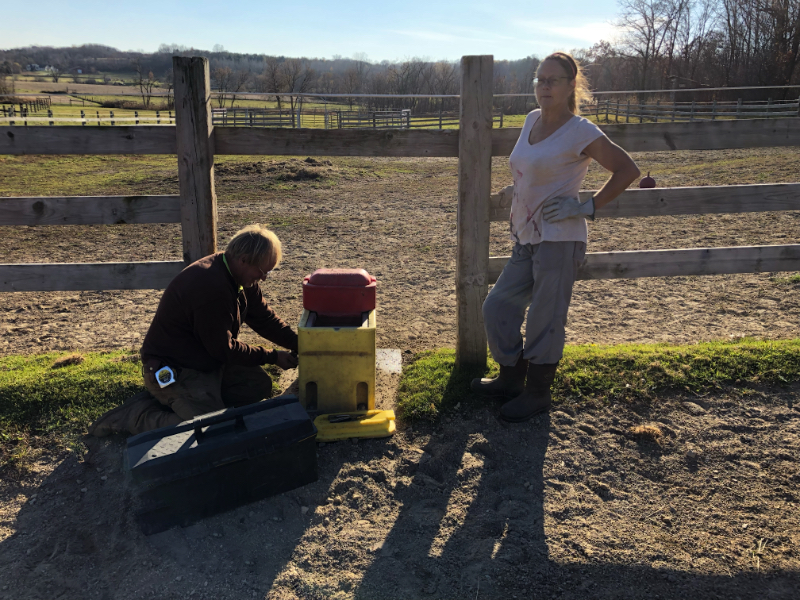 As I was finishing up in the last spot, Cyndie caught up with me and said the guy who installed our horse waterer in the paddocks was coming to figure out why the heater wasn’t keeping the water from freezing like it used to.