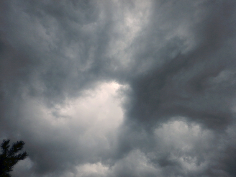While broadcasters talked about the possibility of tornadoes wrapped in the rain in very close proximity to our location, we only saw evidence of normal thunderstorm bluster with heavy rain in the barely visible evening light, occasionally illuminated for fractions of seconds by flashes of lightning.