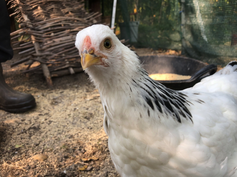 The Light Brahma pullet seems to be reflecting the seriousness of so much drama happening as the change of seasons launches a new batch of adventures. Their nights are getting longer and the air will soon be getting colder.