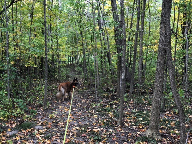 The green vegetation is much thinner than usual. The first colorful leaves are just starting to carpet the forest floor. Soon it will be impossible to see the ground and walking will become a crunching rustle of leaves with every step.