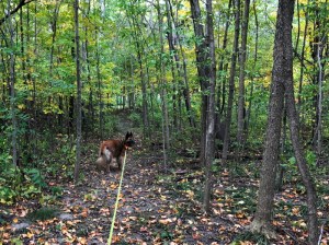 I walked Delilah toward that direction and watched her pick up the scent and go nuts, wanting to follow the trail. I pulled rank and made her come my way, back to the house.