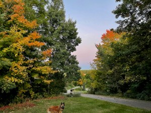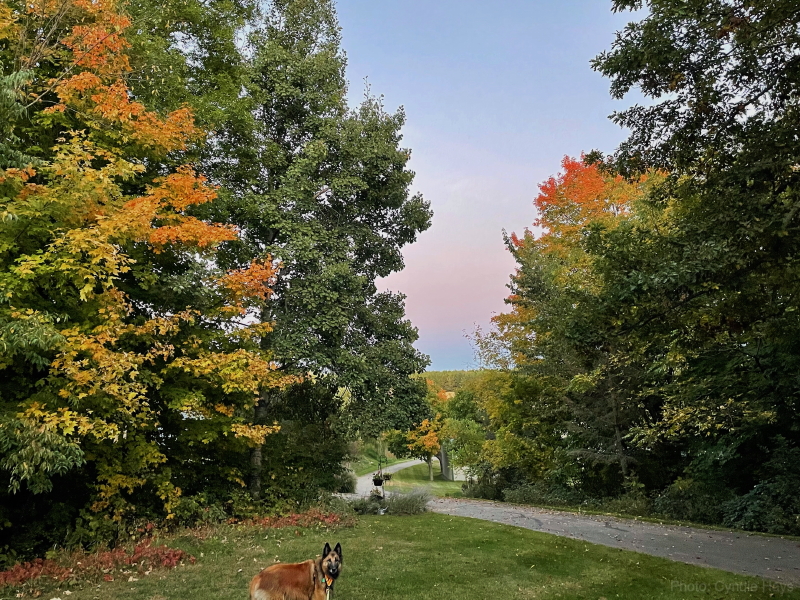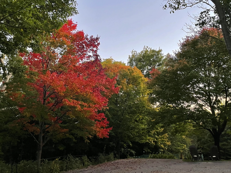 It’s already as dark as can be in the morning when I depart for my commute to the Cities and almost as dark before dinner’s barely finished so the swing of seasons is unmistakable. What I miss while I am at the day-job is the rapidly intensifying colors unfolding in a select few of our trees around Wintervale.