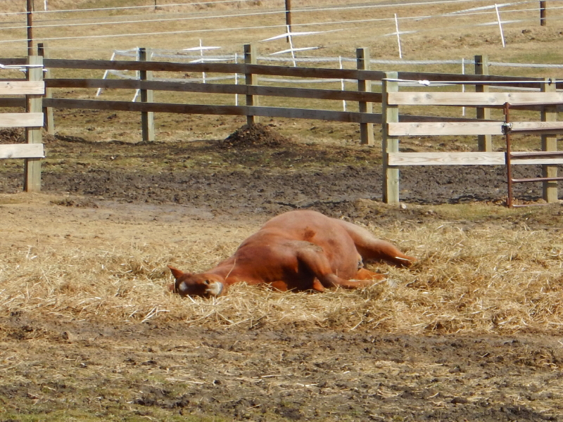 Yesterday, Hunter wanted to sleep deeply in the middle of the day. Once again, my first reaction is alarm. It is always shocking to discover the horses so entirely unconscious.