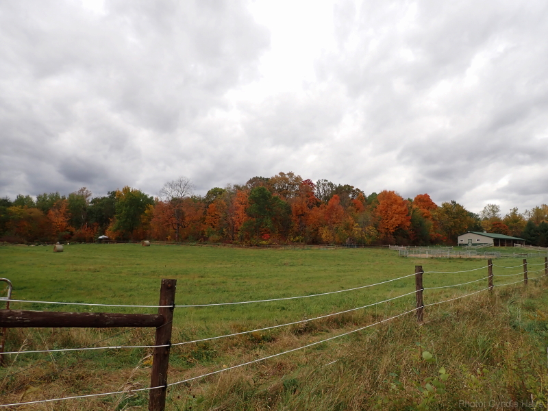 There are a few more trees that decided to join the fun over the weekend. One maple tree by the hay shed is beginning to show deep red in the top third of its branches.