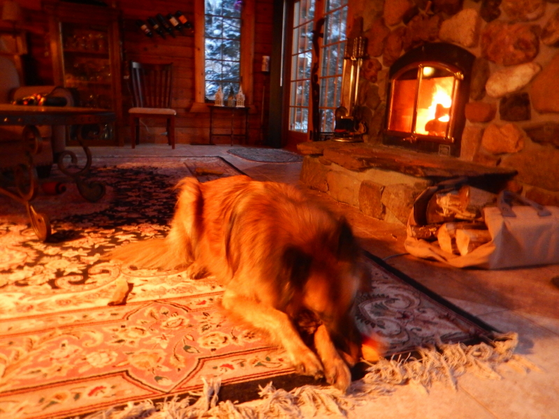 Delilah was gnawing ferociously on a new stuffed duck-looking chew toy that Cyndie bought and suddenly she seemed entranced by how high the sun still was at such an early hour.