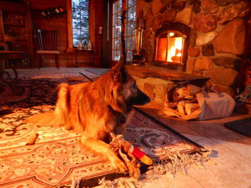 He is so attached to this toy we ended up buying a smaller-sized version that we let him have indoors. He took to the little one right away, but I think he prefers the thickness of the rope in the outdoor ball. He seemed so happy to chew on the rock-hard frozen rope during this cold spell that it gave me the idea of setting one of his indoor felt Kong balls outside long enough to freeze. It made it so hard to chomp in order to squeak it that it wasn’t the thrill for him I imagined.