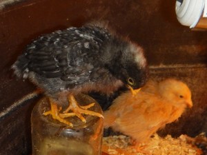 It’s not like they have been ignored, though. There have been a few more visitors than usual stopping by to sneak a peek at the spectacle of John and Cyndie having chickens, and we have welcomed the opportunity to give the chicks as much exposure to being handled as possible.